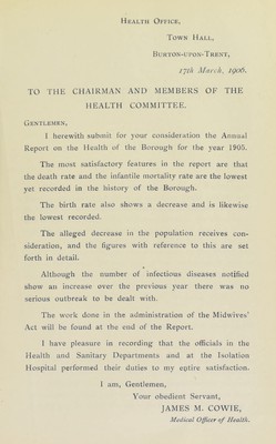 Credit: [Report 1905] / Medical Officer of Health, Burton-upon-Trent County Borough. Source: Wellcome Collection.