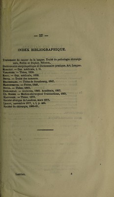 Contribution à l'étude du traitement palliatif du cancer de la langue et en particulier de la ligature atrophiante des artères linguales ... / par Pierre-Jules Larrieu.