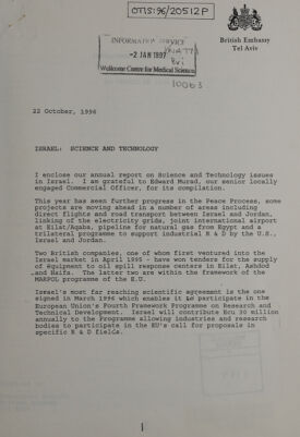 Credit: Developments in science and technology in Israel in 1996 / compiled by Commercial Section, British Embassy, Tel Aviv. Source: Wellcome Collection.