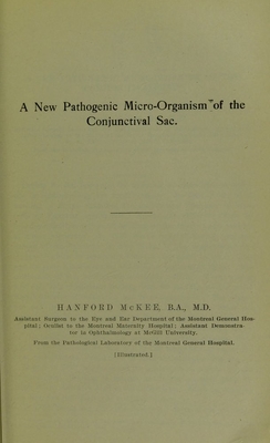 A new pathogenic micro-organism of the conjunctival sac / Hanford McKee.