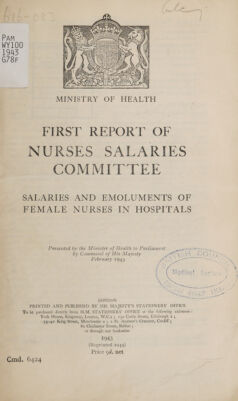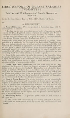First report of Nurses salaries committee : salaries and emoluments of female nurses in hospitals.
