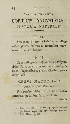 Credit: Dissertatio inauguralis medico-therapeutica de cortice angusturae ... / [Friedrich Albrecht Anton Meyer]. Source: Wellcome Collection.