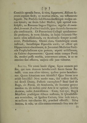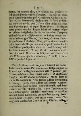 Credit: Oratio anniversaria in theatro Collegii Regalis Medicorum Londinensium, ex Harvaei instituto habita die xviii Octobris A.D. mdcc xxxv / [Sir Edward Wilmot]. Source: Wellcome Collection.