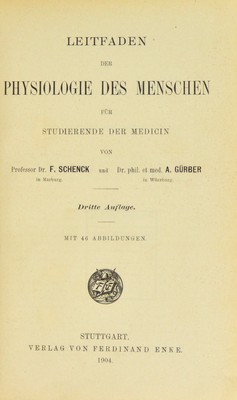 Leitfaden der Physiologie des Menschen : für Studierende der Medicin / von F. Schenck und A. Gürber.