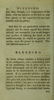 Credit: The gentleman's stable directory; or, modern system of farriery. : comprehending the present entire improved mode of practice: likewise all the most valuable prescriptions and approved remedies ... interspersed with occasional remarks upon the dangerous and almost obsolete practice of Gibson, Bracken, Bartlet, Osmer, and others. Also directions for feeding, bleeding, purging, and getting into condition for the chase. To which are now added, useful instructions for buying and selling; with an appendix, containing experimental observations upon the management of draft horses, their blemishes and defects. Inscribed to Sir John Lade, Bart. / by William Taplin. Source: Wellcome Collection.