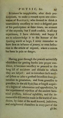 Credit: The gentleman's stable directory; or, modern system of farriery. : comprehending the present entire improved mode of practice: likewise all the most valuable prescriptions and approved remedies ... interspersed with occasional remarks upon the dangerous and almost obsolete practice of Gibson, Bracken, Bartlet, Osmer, and others. Also directions for feeding, bleeding, purging, and getting into condition for the chase. To which are now added, useful instructions for buying and selling; with an appendix, containing experimental observations upon the management of draft horses, their blemishes and defects. Inscribed to Sir John Lade, Bart. / by William Taplin. Source: Wellcome Collection.