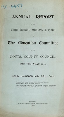 [Report 1910] / School Medical Officer, Nottinghamshire County Council.
