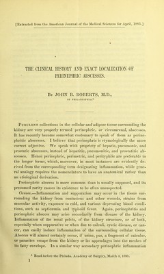 The clinical history and exact localization of perinephric abscesses / by John B. Roberts.