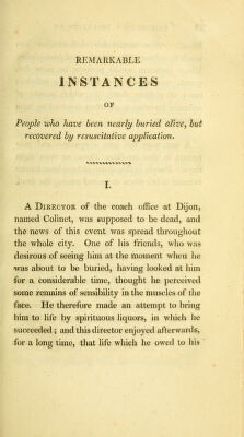 Credit: The danger of premature interment : proved from many remarkable instances of people who have recovered after being laid out for dead, and of others entombed alive, for want of being properly examined prior to interment. Also a description of the manner the ancient Egyptians, and other nations preserved and venerated their dead, and a curious account of their sepulchral ever burning lamps and mausoleums. Likewise the pernicious effects of burying in the body of churches, and confined church yards pointed out, whereby many valuable lives have been lost to the public, and their friends. Selected from historical records / by Joseph Taylor. Source: Wellcome Collection.