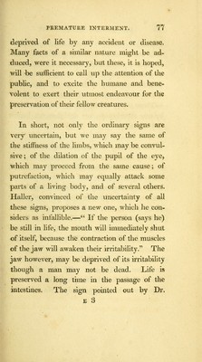 The danger of premature interment : proved from many remarkable instances of people who have recovered after being laid out for dead, and of others entombed alive, for want of being properly examined prior to interment. Also a description of the manner the ancient Egyptians, and other nations preserved and venerated their dead, and a curious account of their sepulchral ever burning lamps and mausoleums. Likewise the pernicious effects of burying in the body of churches, and confined church yards pointed out, whereby many valuable lives have been lost to the public, and their friends. Selected from historical records / by Joseph Taylor.