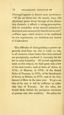 Credit: The danger of premature interment : proved from many remarkable instances of people who have recovered after being laid out for dead, and of others entombed alive, for want of being properly examined prior to interment. Also a description of the manner the ancient Egyptians, and other nations preserved and venerated their dead, and a curious account of their sepulchral ever burning lamps and mausoleums. Likewise the pernicious effects of burying in the body of churches, and confined church yards pointed out, whereby many valuable lives have been lost to the public, and their friends. Selected from historical records / by Joseph Taylor. Source: Wellcome Collection.