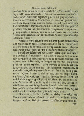 Credit: Dissertatio medica de melacholia / ex epitome praxeos clinicae, Georgii Wolffgangi Wedelii ... eodem praeside. Source: Wellcome Collection.