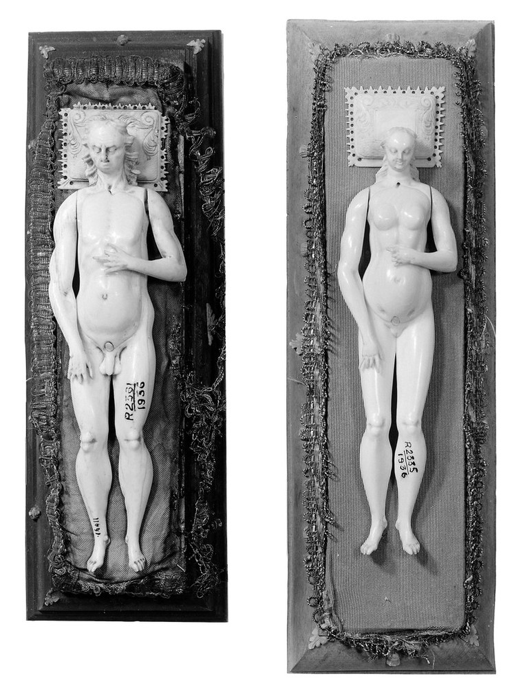 M0018648EA: Anatomical figures in ivory; one female and one male. Attribution 4.0 International (CC BY 4.0). Source: Wellcome Collection.