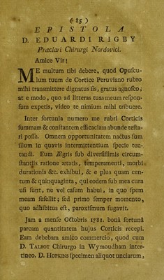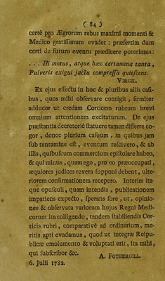Credit: Observationes, quibus praestantiores vires corticis Peruviani rubri, in cura intermittentium aliarumque febrium stabiliuntur. Accedunt hinc indè annotationes in curam aliorum morborum eodem remedio ... / [William Saunders]. Source: Wellcome Collection.