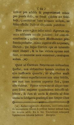 Credit: Observationes, quibus praestantiores vires corticis Peruviani rubri, in cura intermittentium aliarumque febrium stabiliuntur. Accedunt hinc indè annotationes in curam aliorum morborum eodem remedio ... / [William Saunders]. Source: Wellcome Collection.