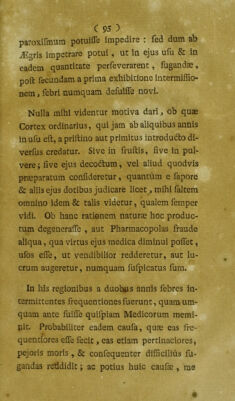 Credit: Observationes, quibus praestantiores vires corticis Peruviani rubri, in cura intermittentium aliarumque febrium stabiliuntur. Accedunt hinc indè annotationes in curam aliorum morborum eodem remedio ... / [William Saunders]. Source: Wellcome Collection.
