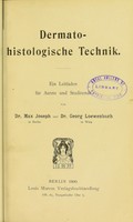 Dermato-histologische Technik : ein Leitfaden für Aerzte und Studirende / von Max Joseph und Georg Loewenbach. In copyright. Source: Wellcome Collection.