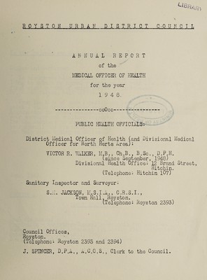 [Report 1948] / Medical Officer of Health, Royston (Hertfordshire) U.D.C.