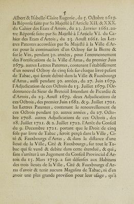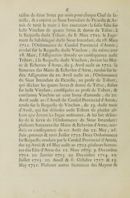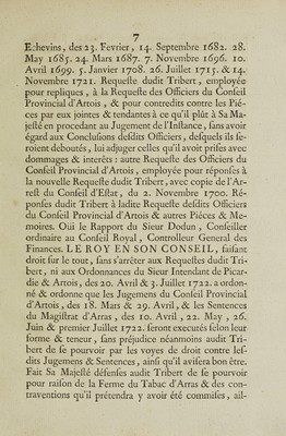 Arrest ... qui ordonne que le fermier [du tabac] ne pourra se pourvoir contre les jugemens ... des magistrats & élûs d'Arras, ailleurs qu'au Conseil Provincial d'Artois. Du 5 avril 1823.