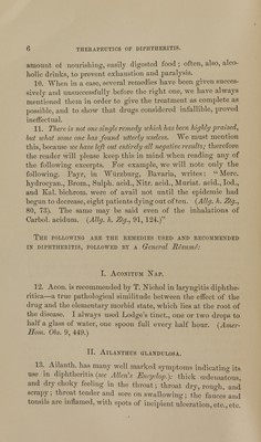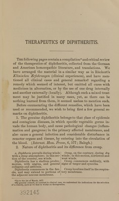 Therapeutics of diphtheritis : a compilation and critical review of the German and American homoeopathic literature / by F. Gust. Oehme.