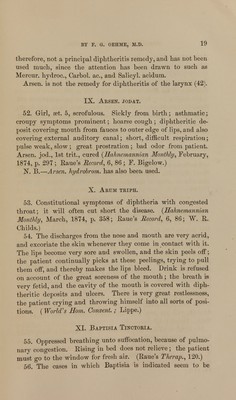 Therapeutics of diphtheritis : a compilation and critical review of the German and American homoeopathic literature / by F. Gust. Oehme.