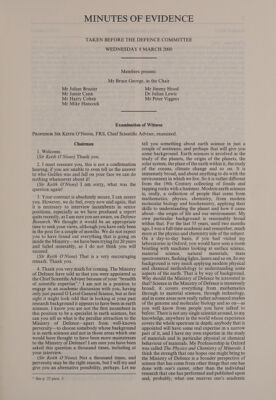 Credit: The appointment of the new Chief Scientific Adviser : sixth report : report and proceedings of the Committee with minutes of evidence and appendices / Defence Committee. Source: Wellcome Collection.