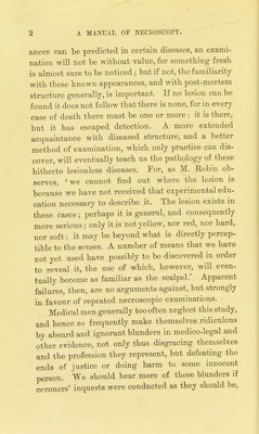 A manual of necroscopy, or, A guide to the performance of post mortem examinations, with notes on the morbid appearances, and suggestions for medico legal examinations : for the use of practitioners and students / by A.H. Newth.
