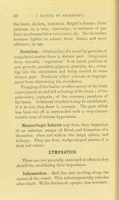 A manual of necroscopy, or, A guide to the performance of post mortem examinations, with notes on the morbid appearances, and suggestions for medico legal examinations : for the use of practitioners and students / by A.H. Newth.