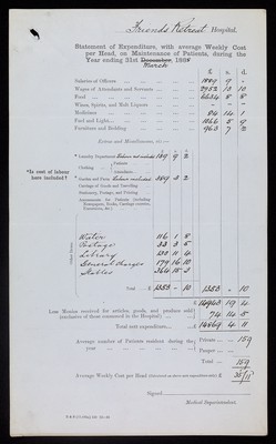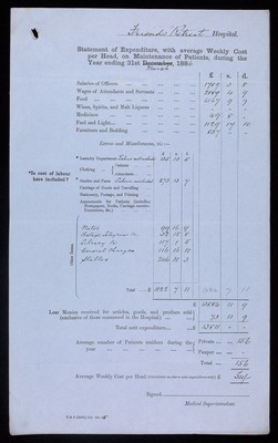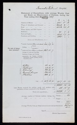 Credit: Annual statements of expenditure and average weekly cost per head of maintenance of patients. Source: Wellcome Collection.