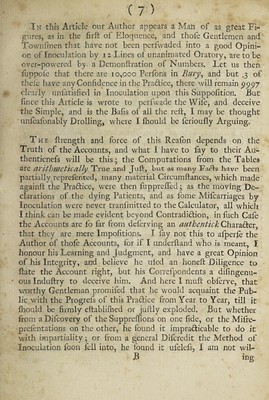 Credit: An answer to a pamphlet, entituled, Some reasons why the practice of inoculation ought to be introduced into the town of Bury at present. / By Martin Warren. M.D. Source: Wellcome Collection.