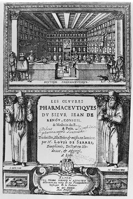 Credit: M0017851: Renou: <i>Les oeuvres pharmaceutique</i>, 1624: title page. Source: Wellcome Collection.