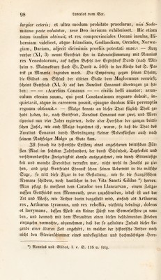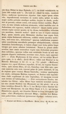 ![07 tritt fcl)cn ©ilbaö in feiner Epistola, § 7, bie tiod;!! it)af)rfc(}ein[id^ im 3abve 564 nevfaft ivavb *). 27a lf)eif?t eö: »Quid tu eniin, insularis draco, tmdlorum tyrannorum dcpulsor tarn regno quam etiain vita, supradictoruni novissiine in nostro stylo, jtrime in malo, major niultis potentia siinulque malitia, laryior in dando, profu- sior in peccato, robuste anius, sed aniinac fortior cxcidiis, Maylo- cune, in tarn vetusto scederum atramento, vcluti madidus vino de Sodomilana vite expresso, stolide volutaris? Quare tantas pccca- minum regiae ccrvici spontc, ut ita dicam, incluctabilcs, celsorum cc'u inontiuni, innectis molos? Ouid tc non ci regum omnium Regi, quem cunctis pene Britanniac ducibus tarn regno fccit, quam Status liniamento editiorem, exhilns ceteris moribus melio- rem, sed versa vice, deteriorem? quorum indubitatam aequani- miter convitiorum auscultatio parumper adstipulationem, omissis domesticis levioribusque, si tarnen aliqua sunt levia, palata longe lateque per auras admissa testaturam. Nonne in primis adole- scentiae tuae annis aviincidum regem cum fortissimis propemo- dum militibus, quorum vultus non catulorum leonis in acie ma- gnopere dispaics visebantur, acerrime ense, basta, igni, oppressi- sti?i — 27iefcr Maglocunus i)! fein anberer, afä ber mdlfd^e Mael- gun (gun, b. b- cbefj, ^ur)!: SWaet, beffen and) Odenniuö in ber Historia Riitonum § 6'i (I. c. p. 72) gebenft: DMadcunus, ‘mogiius 1 ex, apud lirittones regnabat, id est, in regione Guene- dotae, quia atavus il]ius, .id est, Cunedag, cum tiliis suis, quo¬ rum numeius octo erat, venerat prius de parte sinistrali, id est, de regione quae vocatur Manau Guotodin, centum quadraginta sex annis, antequam Mailcun regnaret, et Scottos cum ingentis- sima cladc expulerunt ab istis regionibus, et nusquam reversi sunt iterum ad habitandum.« — 2)iefe r'crt'ejcid)ncten £luelten, inö; befonbre ben Öilbaö, bef[en 5Sorte fogar tt)ei[ir»eife inieberboit luerben^ bat ebne 3iveifet ©ottfrieb t)on SJfonmoutb ücr ftd} gehabt, a(ö er in feiner brittifd}en Cbfonif L. XI, c. 7. ben Malgo hinter 7fure(iuä (2o= nanu6 unb Sßiortiporiiiö, bie and) ©iibaö Epist. § 4, 5, mit heftigen 0d}mdhrebcn angreift, mit fcigenben SBorten in feiner 5fcnigöreihc aiifi nahm: »Cui (Wortiporio) successit Malgo, omnium fere Britan- mac pidcei I tmus, midtoi um tgraniiorum depulsor^ robustus armfs. *) StenniuS unb ©ilbag, r. ©an^SKarte. SScrlin, 18i4, ©, 99, 160, 161. 7](https://iiif.wellcomecollection.org/image/b29347956_0109.jp2/full/800%2C/0/default.jpg)