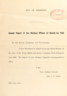 [Report 1943] / Medical Officer of Health, Salisbury (New Sarum) City.