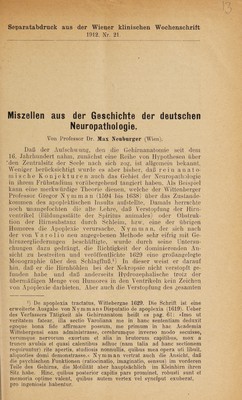 Aus der Vergangenheit der deutschen Neuropathologie / [Max Neuburger].