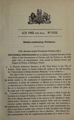 Credit: Specification of Richard Archibald Brooman : smoke-consuming furnaces. Source: Wellcome Collection.