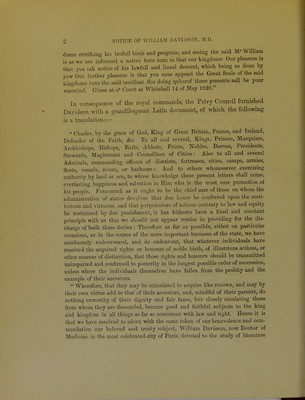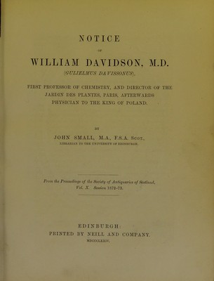 Notice of William Davidson, M.D. (Gulielmus Davissonus), first Professor of Chemistry, and Director of the Jardin des Plantes, Paris, afterwards physician to the King of Poland / by John Small.