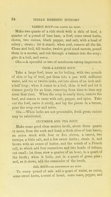 Credit: Indian domestic economy and receipt book, with Hindustanee romanized names : comprising numerous directions for plain wholesome cookery, both Oriental and English, with much miscellaneous matter, answering all general purposes of reference connected with household affairs likely to be immediately required by families, messes, and private individuals, residing at the presidencies or out-stations / by R. Riddell. Source: Wellcome Collection.