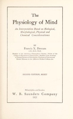 The physiology of mind : an interpretation based on biological morphological, physical and chemical considerations / by Francis X. Dercum.