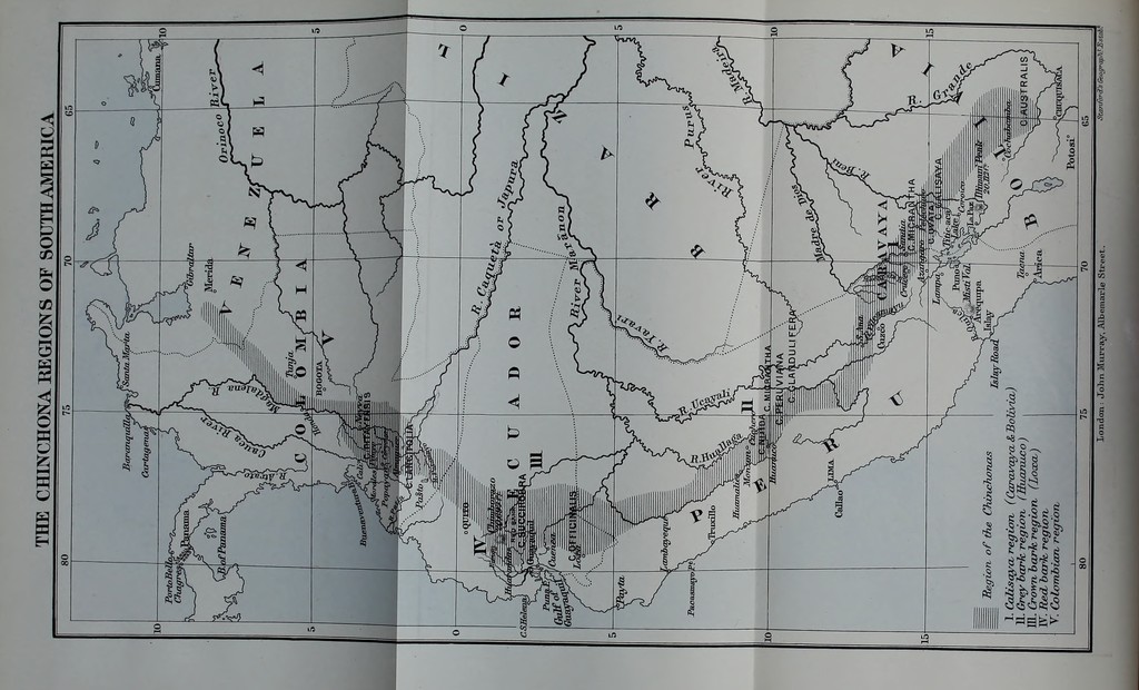 Credit: Peruvian bark : a popular account of the introduction of Chinchona cultivation into British India / by Clements R. Markham ... 1860-1880. Source: Wellcome Collection.