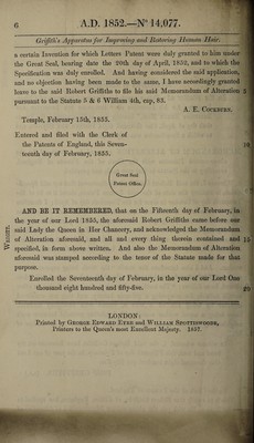 Credit: Specification and memorandum of alteration of Robert Griffiths : improving and restoring the human hair. Source: Wellcome Collection.