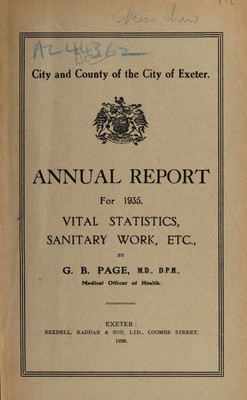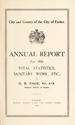 Credit: [Report 1935] / School Medical Officer of Health, Exeter. Source: Wellcome Collection.