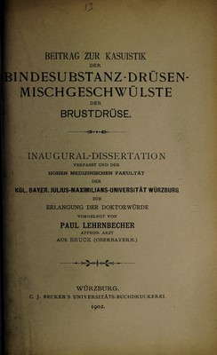 Beitrag zur Kasuistik der Bindesubstanz-Drüsen-Mischgeschwülste der Brustdrüse ... / vorgelegt von Paul Lehrnbecher.