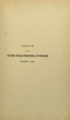 Notice sur le Deuxième Congrès international de physiologie (Liège 1892) / par Léon Fredericq.
