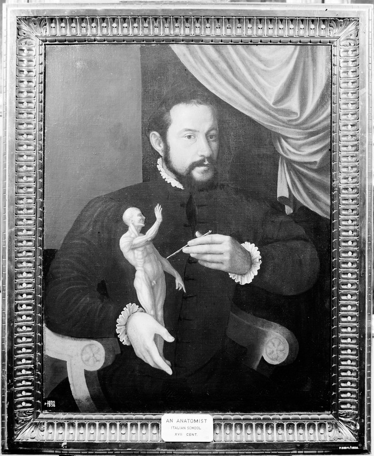 M0007633: A man holding an écorché statuette. In copyright. Source: Wellcome Collection.