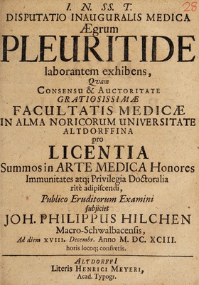 Credit: Disputatio inauguralis medica aegrum pleuritide laborantem exhibens ... / [Johann Philipp Hilchen]. Source: Wellcome Collection.