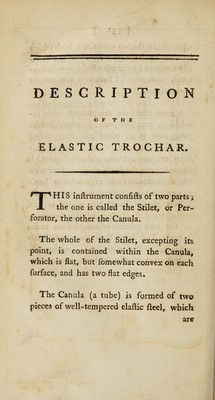 Credit: Account of an elastic trochar, constructed on a new principle, for tapping the hydrocele and abdomen / [John Andree]. Source: Wellcome Collection.