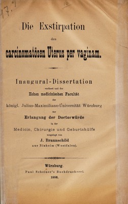Die Exstirpation des carcinomatösen Uterus per vaginam ... / vorgelegt von J. Braunschild.