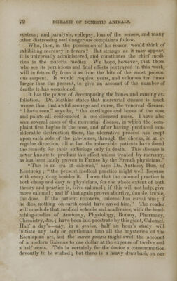 The American eclectic practice of medicine, as applied to the diseases of domestic animals : in which every form of disease peculiar to animals is treated in accordance with the most approved methods of modern science : with a treatise on bleeding, blistering, mercurializing, and the pernicious effects of minerals on the animal fibers : with a list of poisons and their antidotes : together with a historical sketch of the horse, and the principles of breeding, rearing, training, and the general management of the horse / by Nelson N. Titus.