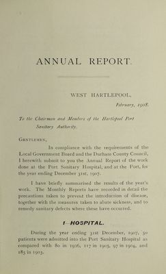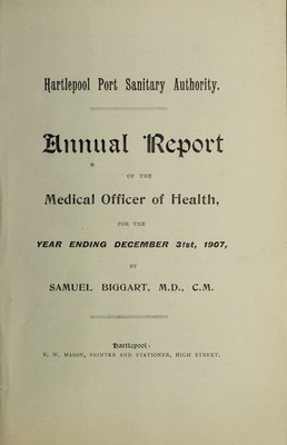 [Report 1907] / Medical Officer of Health, Hartlepool Port Health Authority.