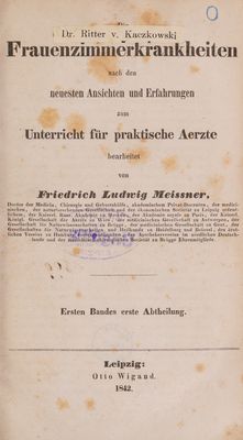 Die Frauenzimmerkrankheiten nach den neuesten Ansichten und Erfahrungen zum Unterricht für praktische Aerzte bearbeitet / [Friedrich Ludwig Meissner].